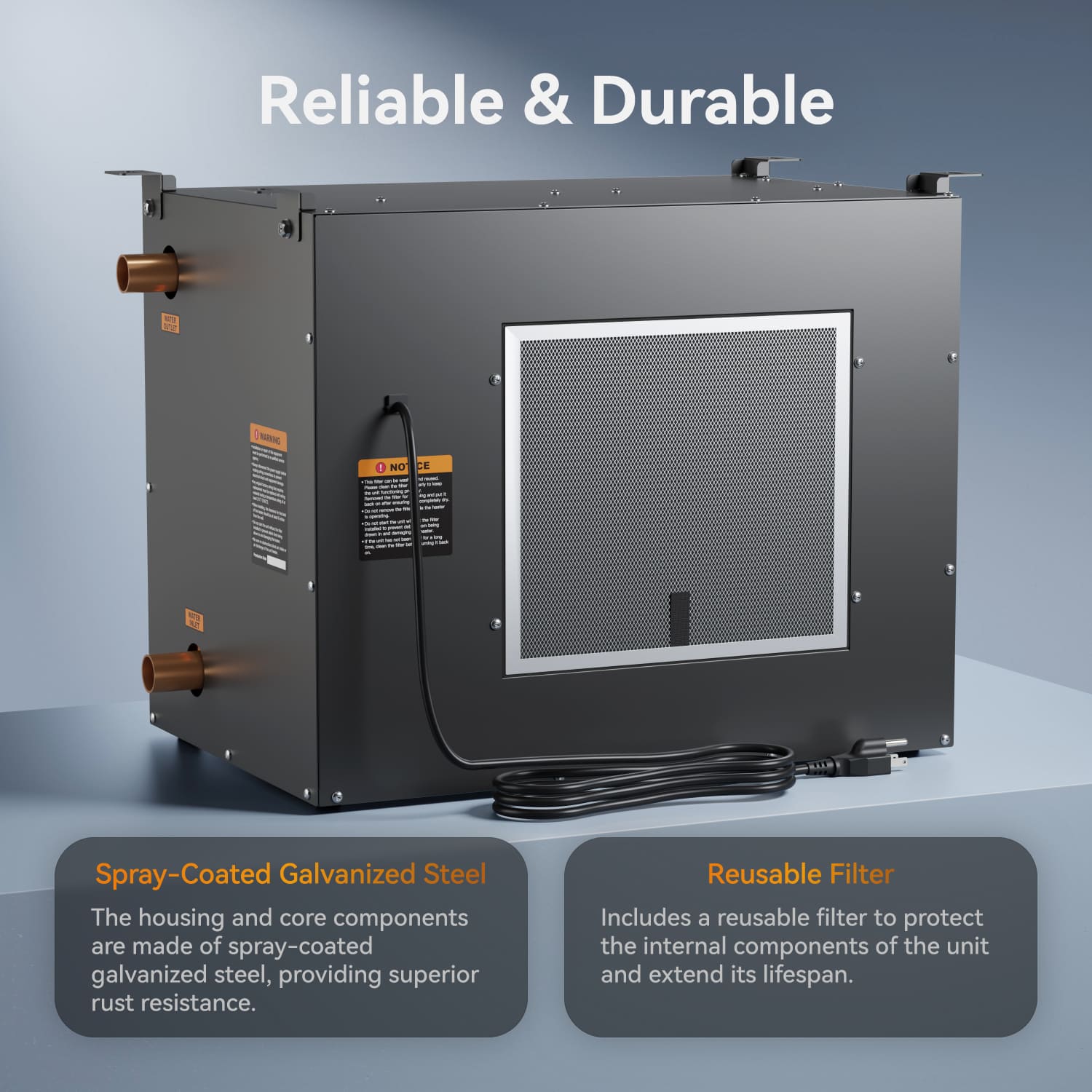 - 【Whisper & Adjustable Directional Airflow】The unit uses centrifugal blower, which has the characteristics of low noise, high pressure and maintenance-free.