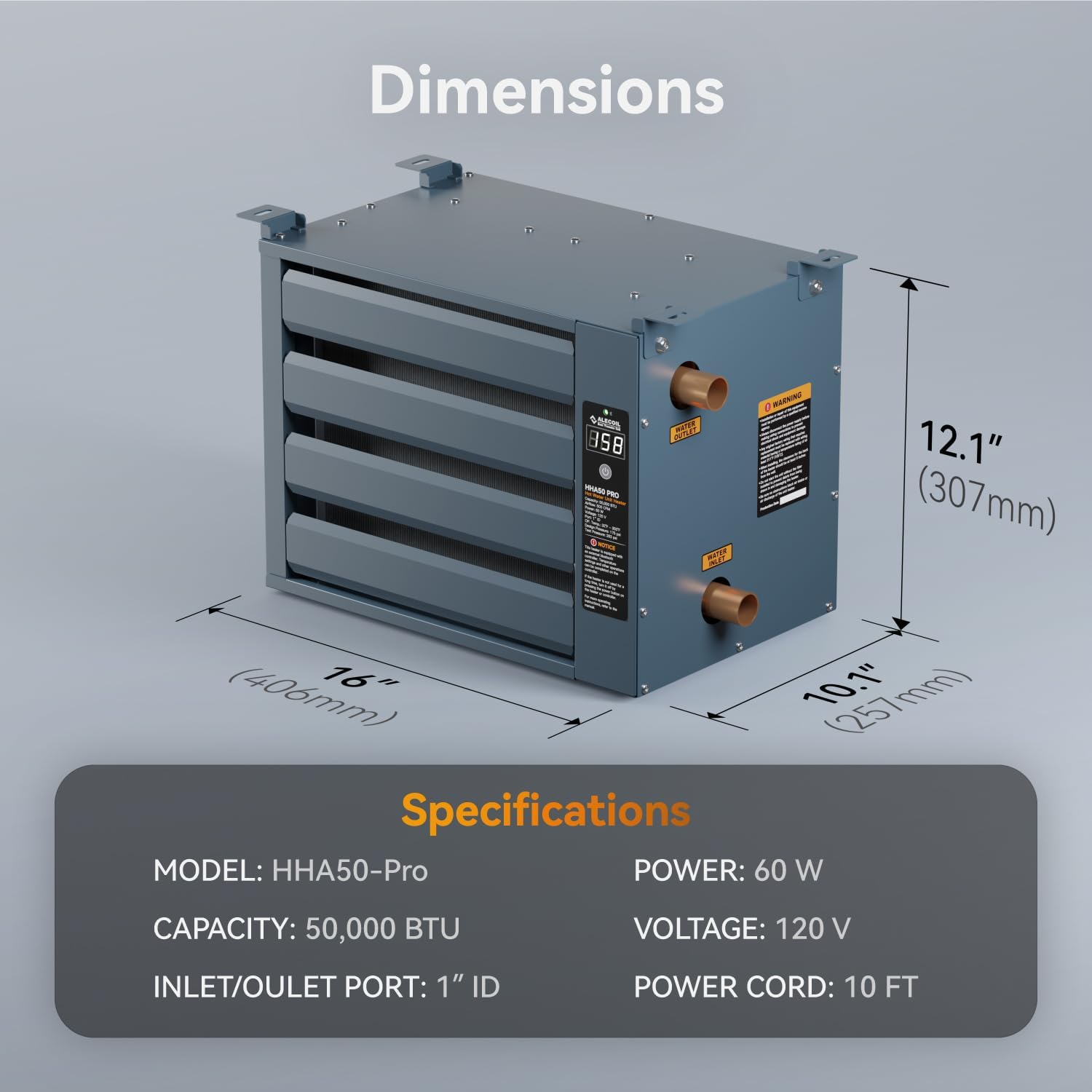 - 【Outstanding Performance】ALECOIL hot water hanging unit heater uses the energy from a building’s hot water source(outdoor wood boilers) to offer efficient, whisper quiet operation, and comes with the temperature control switch, sensing the temperature of the water inlet to control the fan start/off, provide a simple way to set your desired temperature.