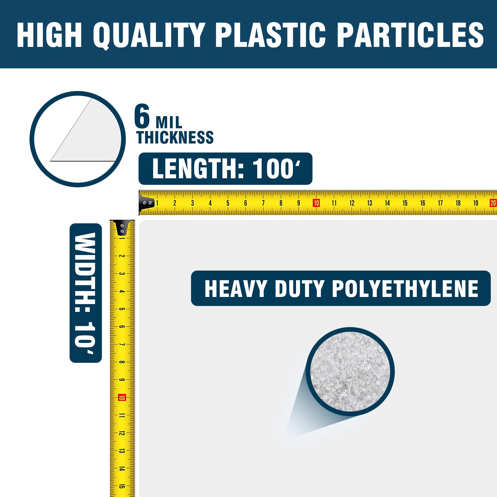 - Multi-Purpose – Our 10 mil plastic drop cloth can be used as a barrier film, vapor barrier, protection barrier for painting, spray barrier and more! It is a staple among crawl space DIYers, construction professionals and hobbyists.