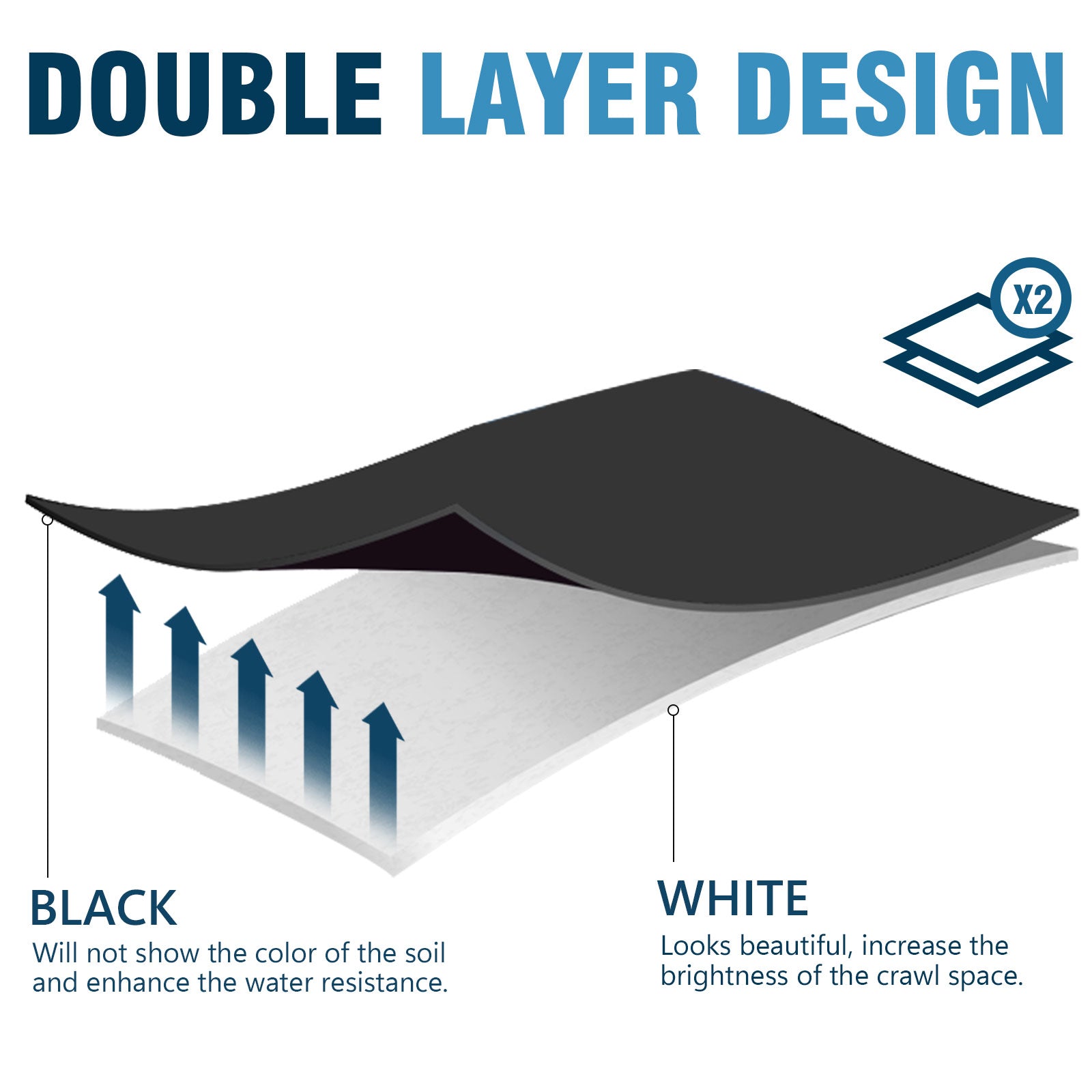 - Double Sided – the product is composed of black and white surfaces, both of which can block water vapor, black surfaces can prevent light penetration, and white surfaces can reflect 90% of light