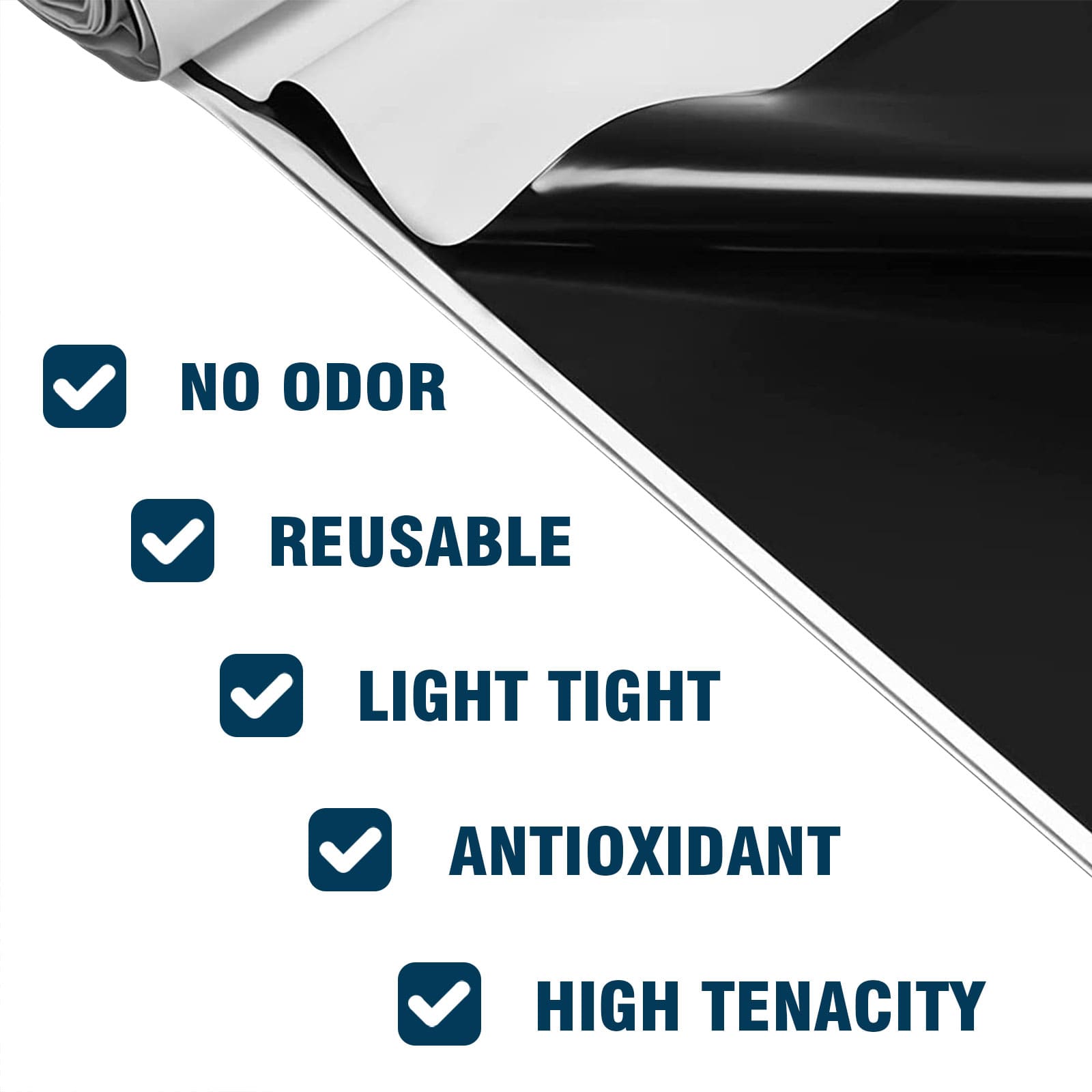 - Double Sided – the product is composed of black and white surfaces, both of which can block water vapor, black surfaces can prevent light penetration, and white surfaces can reflect 90% of light